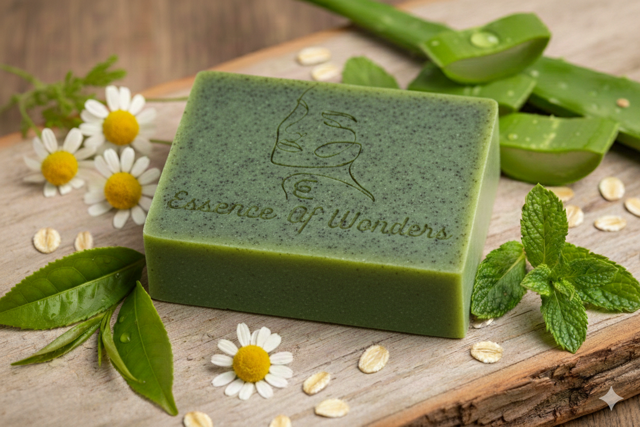 This soap is naturally exfoliating , with infused essential oils.