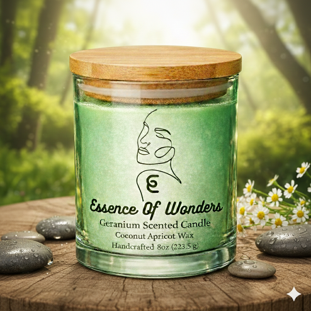 Geranium Essential oils and Coconut Apricot Wax, Handcrafted.