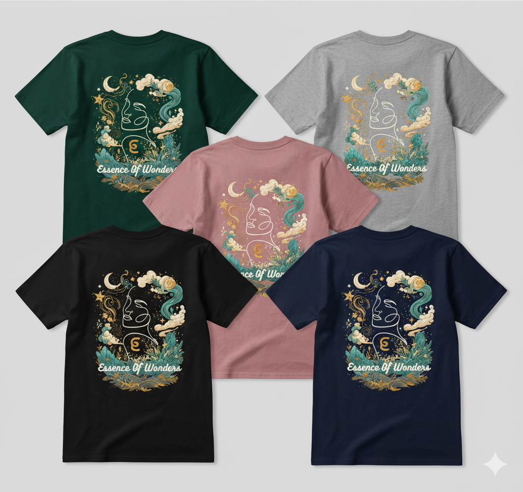 a variety of colored cotton T-Shirts with a zen like theme with logo print